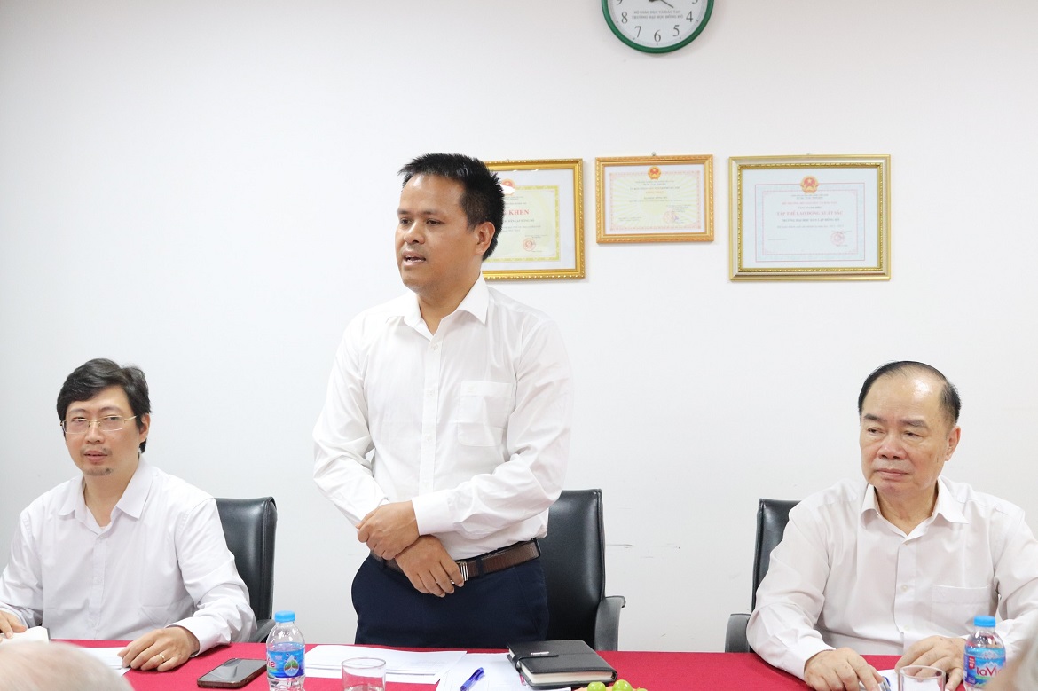 TS. Trịnh Hữu Tuấn - Chủ tịch Hội đồng Trường đại diện báo cáo với các cựu cán bộ về kết quả hoạt động các năm qua